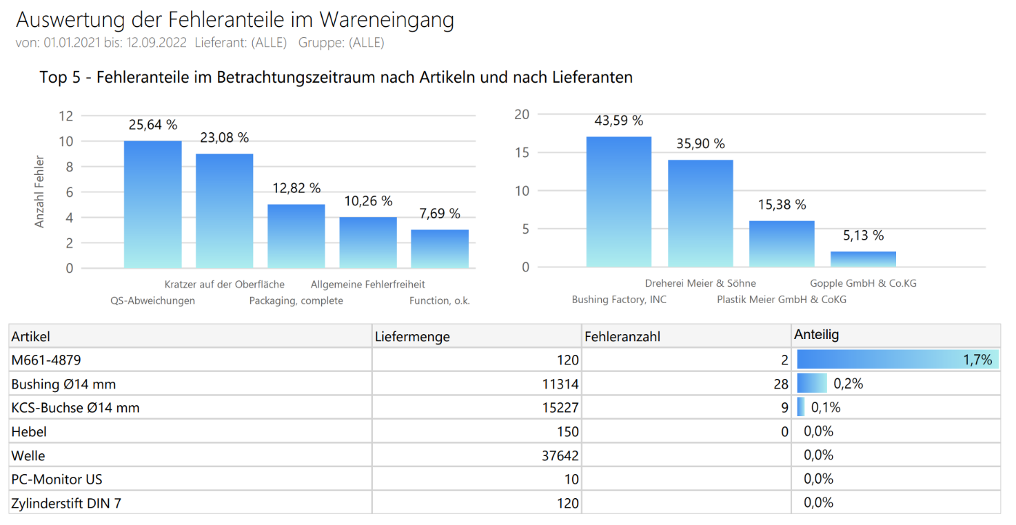 Auswertung der Reklamationen Die Reklamationsauswertung bietet Ihnen einen schnellen Überblick über alle Reklamationsvorgänge. Die Diagramme liefern einen Einblick in die Verteilung der Reklamationen nach Typ und Status. Sie sehen wichtige Informationen wie...